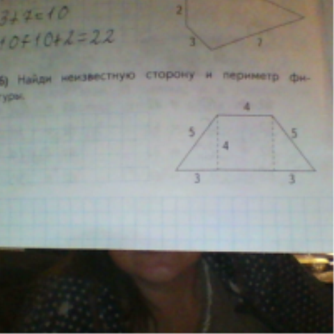 т. к у квадрата все стороны равны, то неизвестная сторона равна 10 ( 3+3+4) , а периметр всей фигуры равен 24 (10+5+5+4)