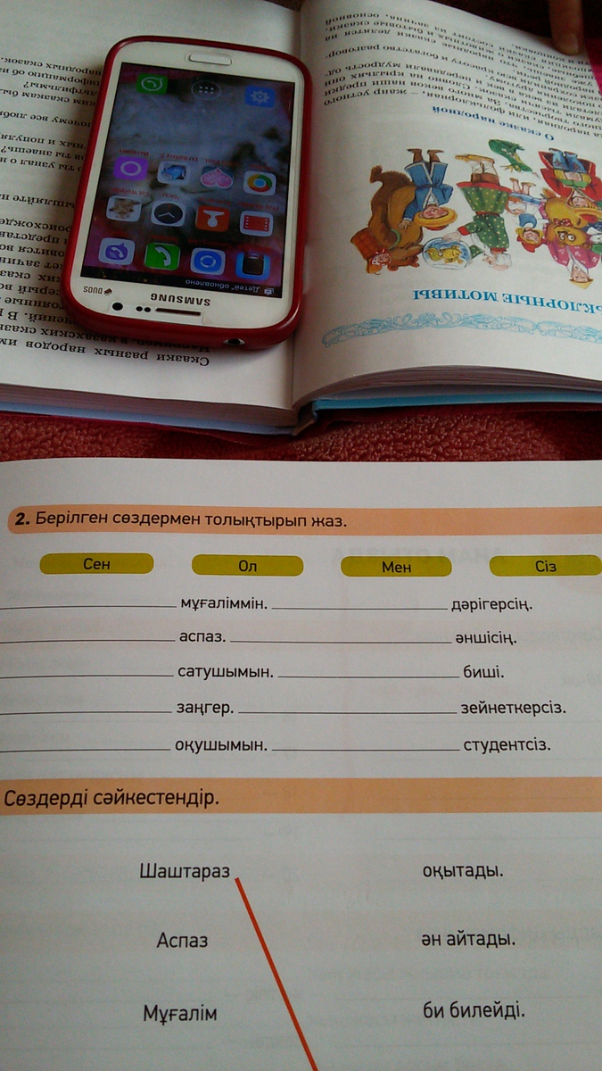 мен мугалиммин. сен даригерсин. ол аспаз. сен аншисин. мен сатушымын. ол биши. ол зангер. сиз зейнеткерсиз.мен окушымын. сиз студентсиз