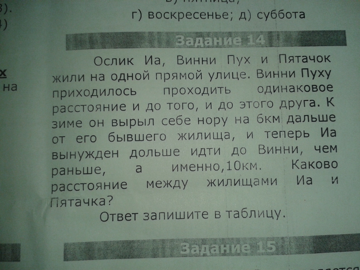 Виннипух вырыл себе нору расстоянием в 6 км расстояние до жилища ослика увеличилось на 10 км итого получаеться 16 км