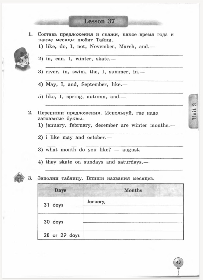 составь предложение и скажи какое время года и какие месяцы любит тайни