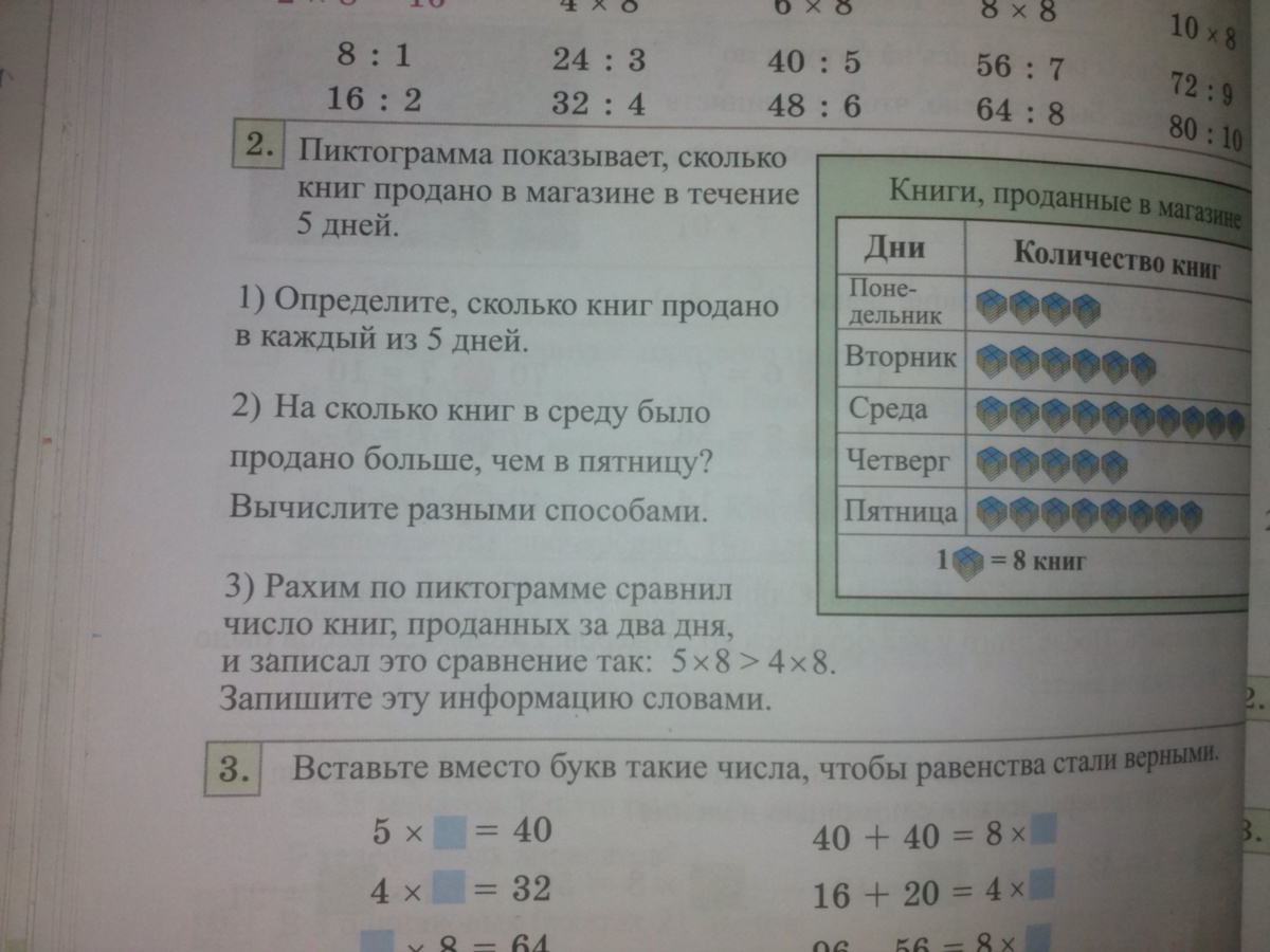 8*8=64 книг в пятницу.