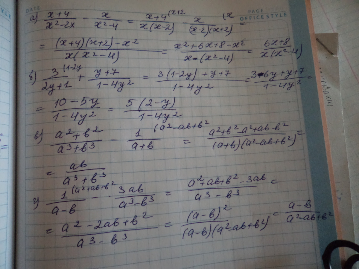 в) a^2+b^2/a^3+b^3 - 1/a+b