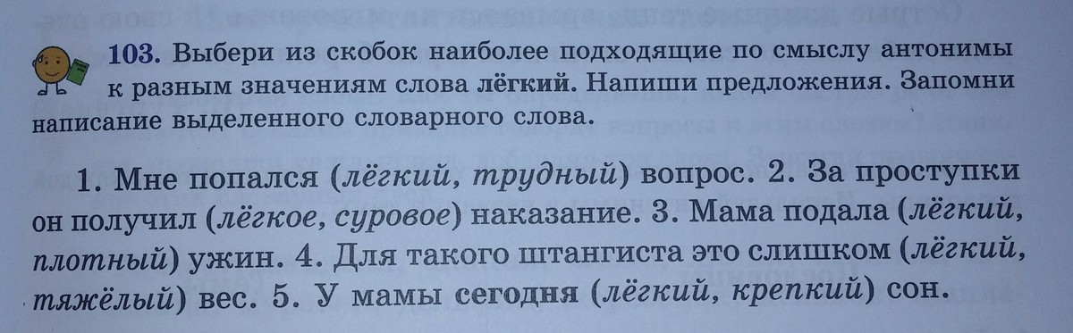 1 Мне попался трудный вопрос. 2 За проступки он получил суровое наказание 3 Мама подала плотный ужин .4 Для такого штангиста это слишком тяжелый вес .5 У мамы сегодня крепкий сон.