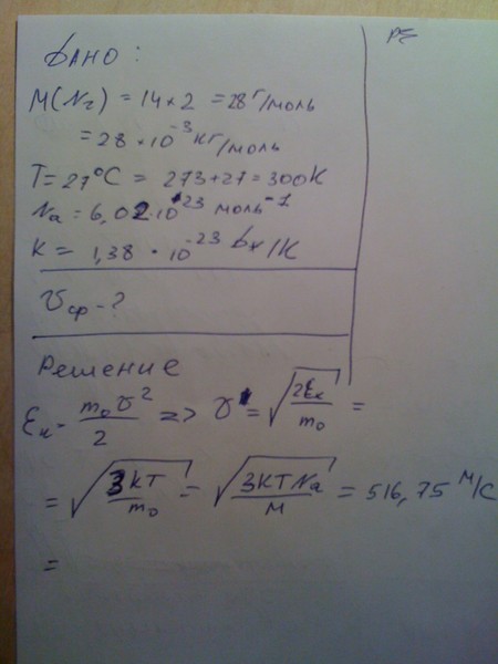 v = корень(3*постБольцмана*Температура*числоАвагадро / Молярная масса)