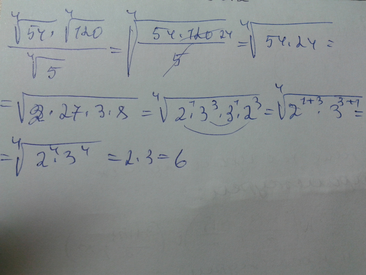 корень 4 степени из числа 54 умножить на корень 4 степени из числа 120 поделить на корень 4 степени из числа 5