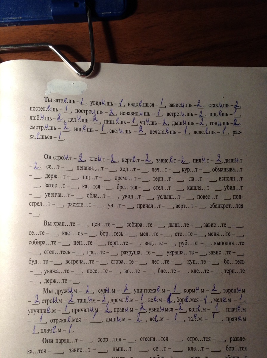 сеет ненавидит ходит лечит курит обманывает держит ищет дремлет терпит лает исполнит затеет кается бреется стелет кашляет убедит увенчает облает увидит услышит повесит