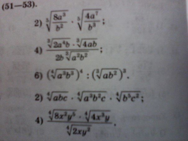 sqrt[5]{ frac{8a^3*4a^7}{b^2*b^3} } = sqrt[5]{ frac{32a^{10}}{b^5} } = frac{2a^2}{b}