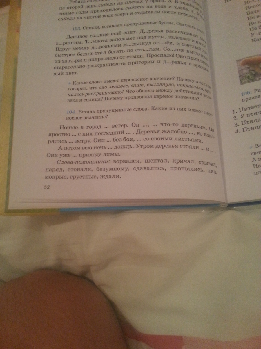Вставь пропущенные слова . Какие из них имеют переносное значение ? УПР.104