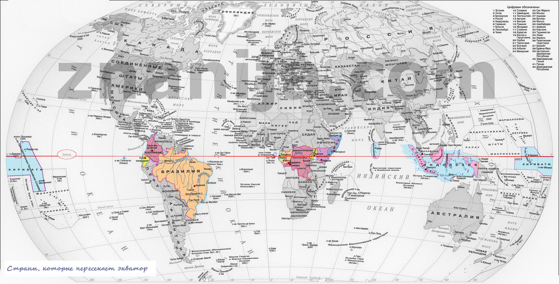 - в городе Макапа (Бразилия), который расположен одновременно в северном и южном полушариях, есть стадион «Зеран», пересекаемый линией экватора практически по средней линии поля;