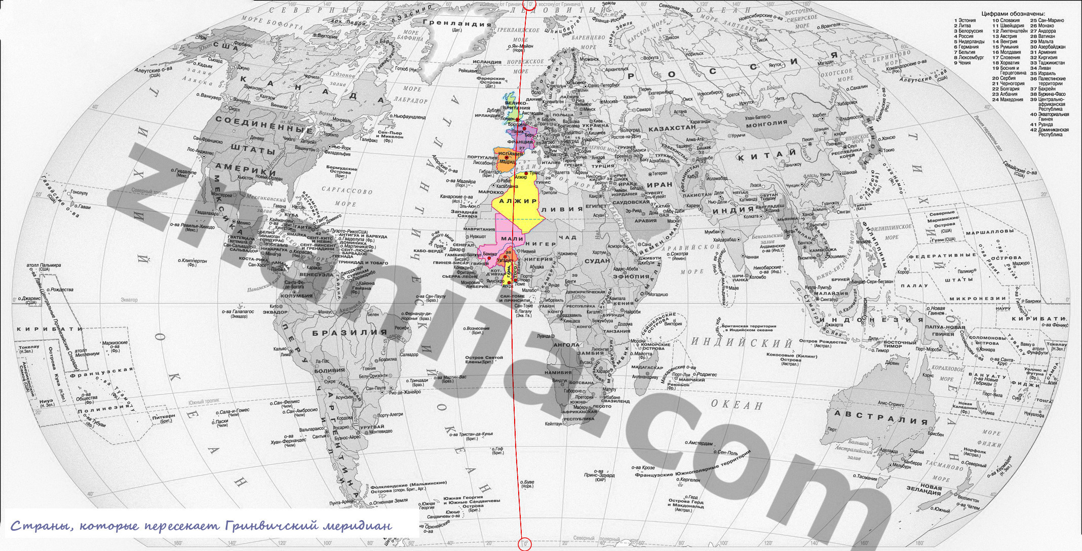 Ответ: Великобритания, Франция, Испания, Алжир, Мали, Буркина Фасо, Гана, Того.