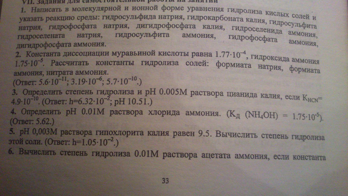 Это было для третьего вещества. Первое и второе аналогично. За Kw принято брать 10^-14, а Kb или же Ka табличные значения.