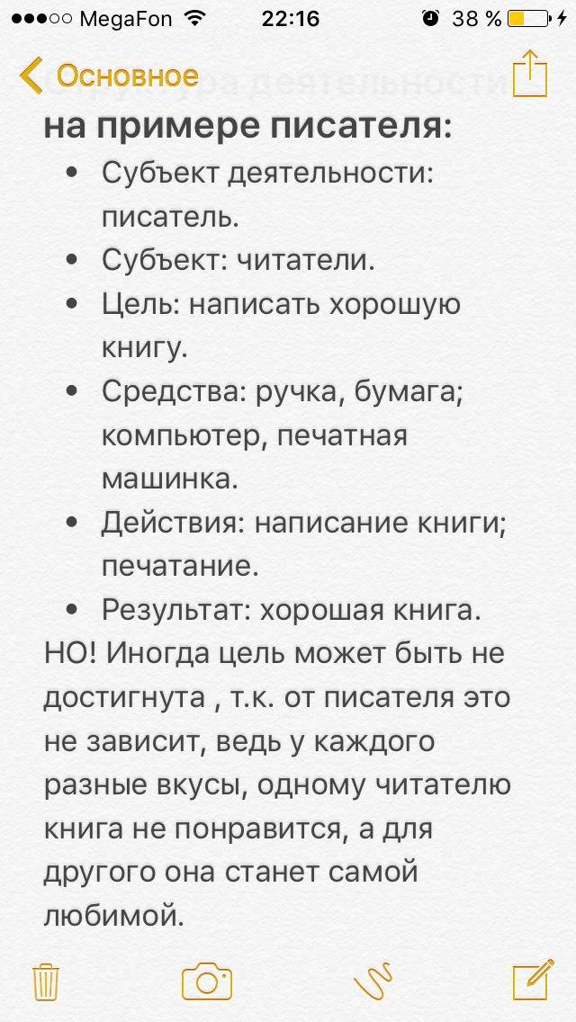 Можете проверить правильно ли я проиллюстрировала структуру деятельности на примере писателя?