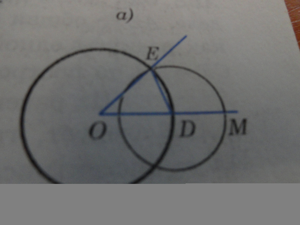 АВ и АС являются радисами окружности с центром А, а отрезки ОD и Ое-радиусами окружности с центром О.