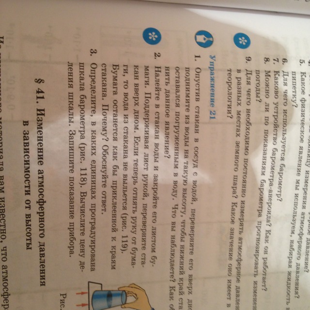 мы это проходили)))))))))) 1. если стакан перевернуть из него не вытечет вода))))