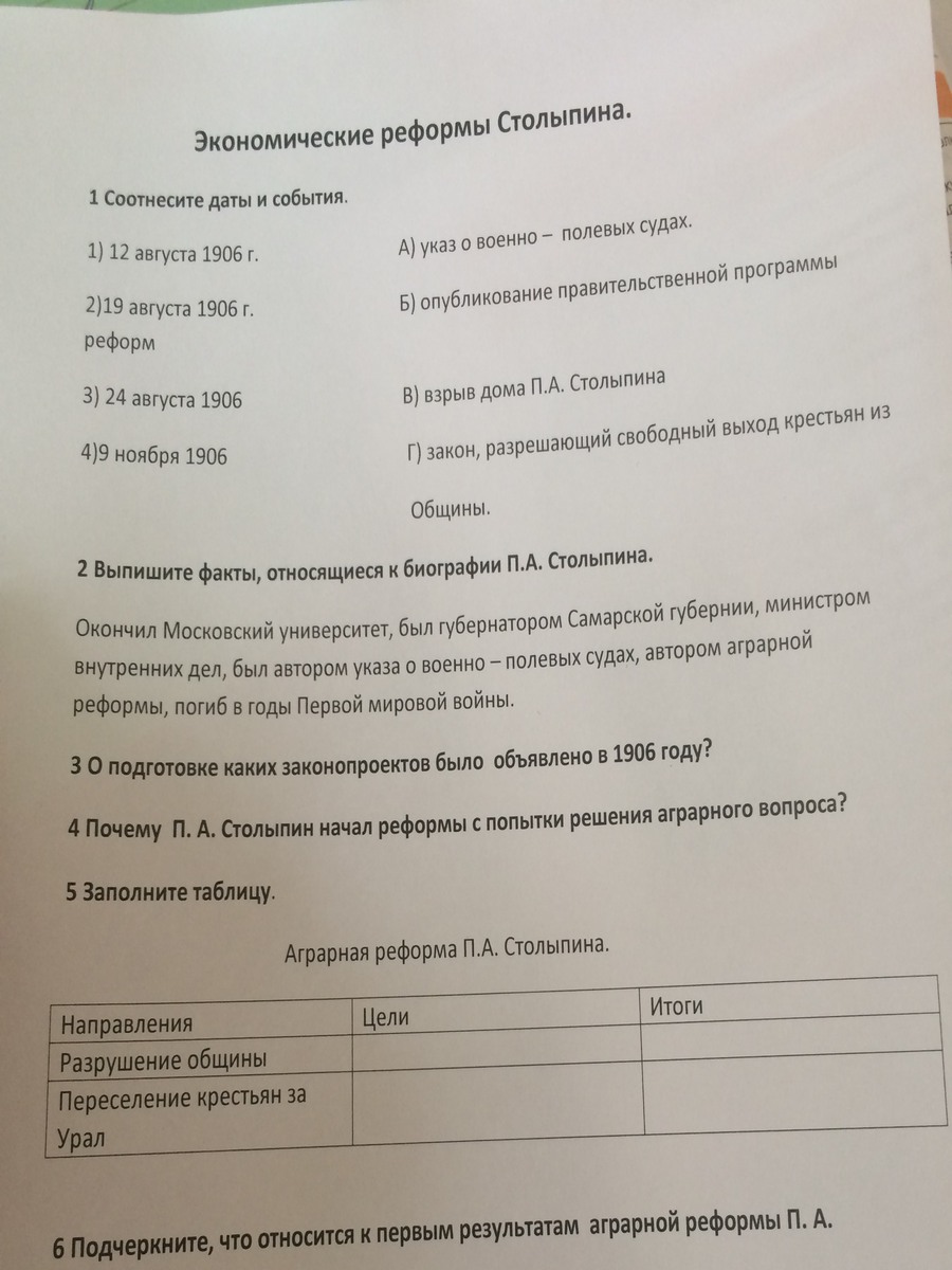 Цели: Разрушить общину, создать предпосылки отдельных хозяйств.