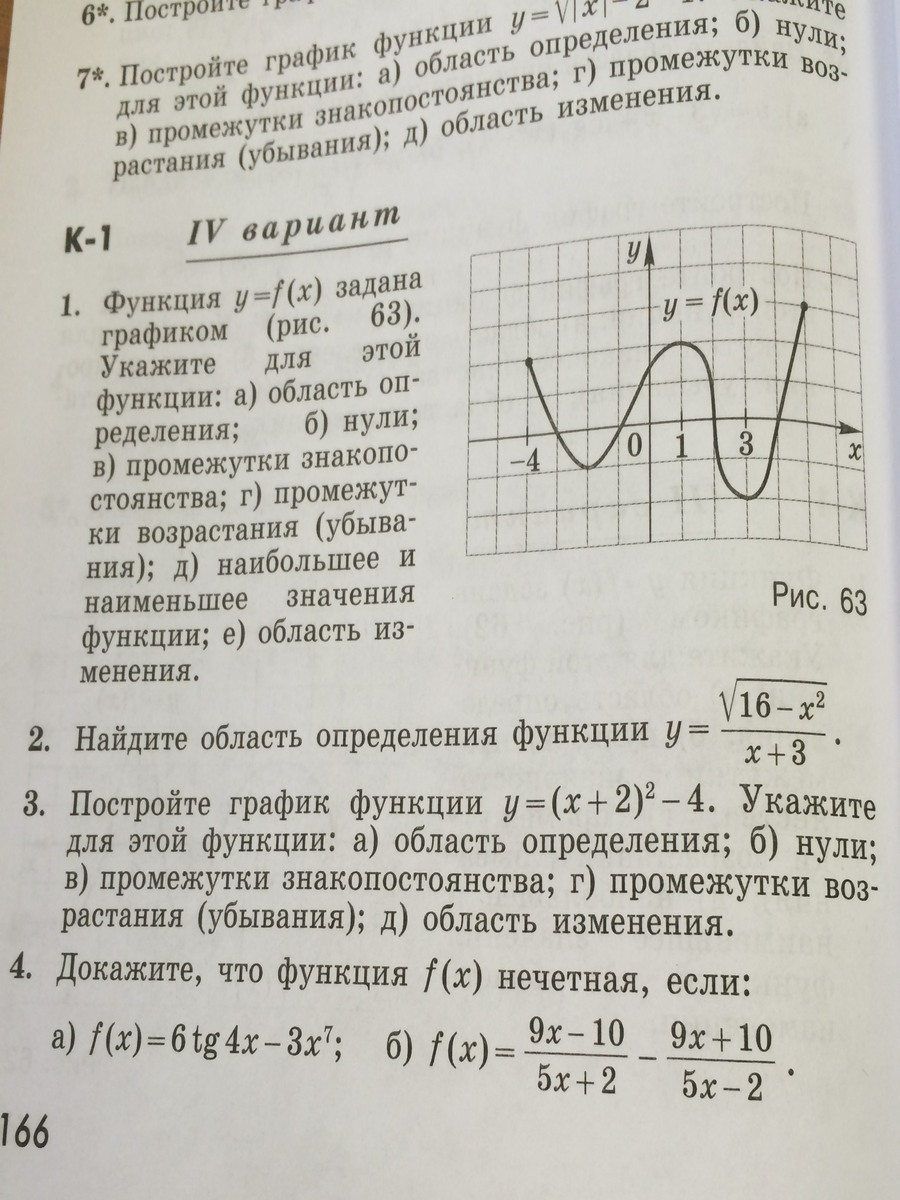 1); D(y)=[-4,5]\\2); x=-3,-1,2,4.\\3); y textgreater  0:; ; xin (-4,-3)U(0,2)U(4,5)\\y textless  0:; xin (-3,-1)U(2,4)\\4); vozrastanie:; (-2,1),(3,5)\\ybuvaet:; (-4,-2),(1,3)\\5); y_{naibol}=3,; ; y_{naimen}=-2\\6); yin [-2,3]