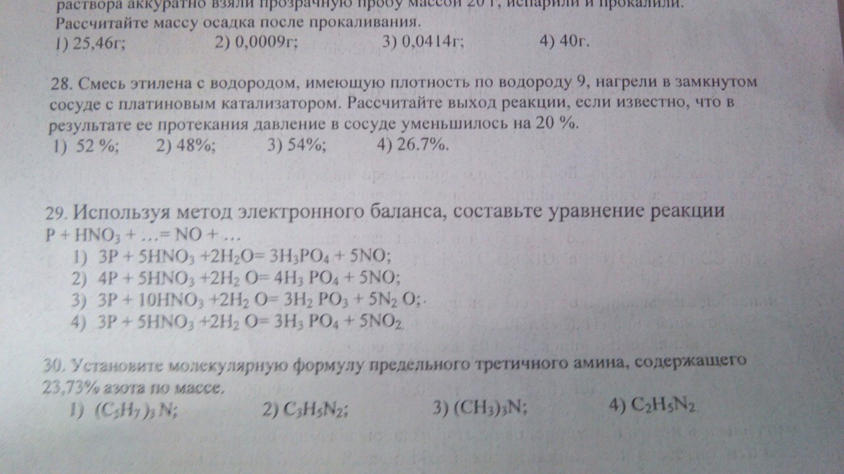 φ = A(N)/M(амина) = 14/59 * 100% = 23,72% -- ответ амин (СH₃)₃N -- ответ №3
