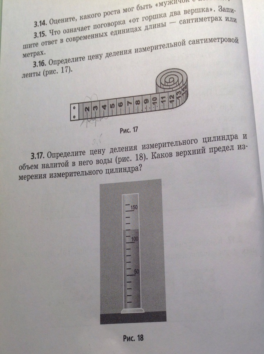 Сорян 5 милиметров это ответ к задаче 3.16 Ответ к 3.17 = 10 милилитров цена деления. Объем равен 120 мл.