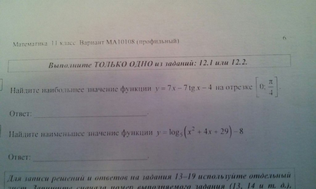 y = 7x - 7tg x - 4; x ∈ [0; pi/4]