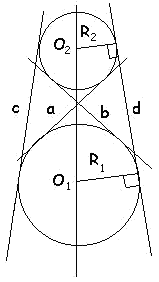 R1=9, R2=4, O1O2=13. Найти нужно отрезок d.