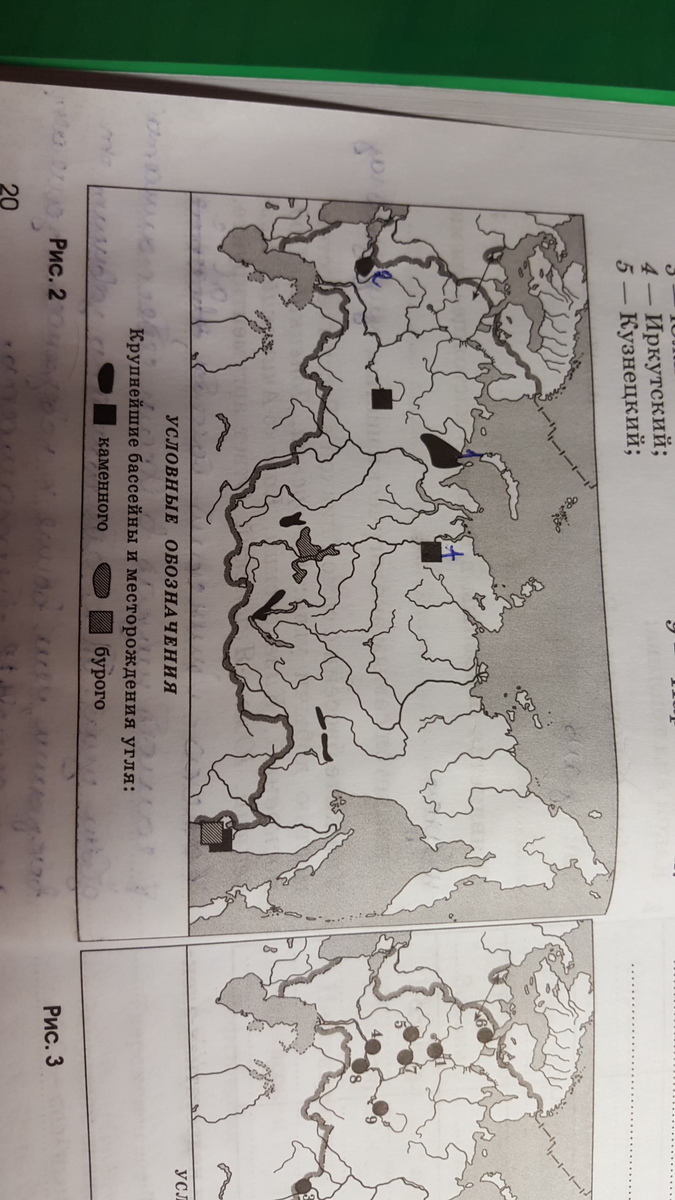 на рисунке 2 цифрами обозначьте угольные бассейны: