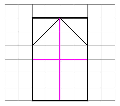 Отрезать нижние уголки, приставить их к верху и разрезать на 4 прямоугольника 2 на 3 клетки (см. вложение).