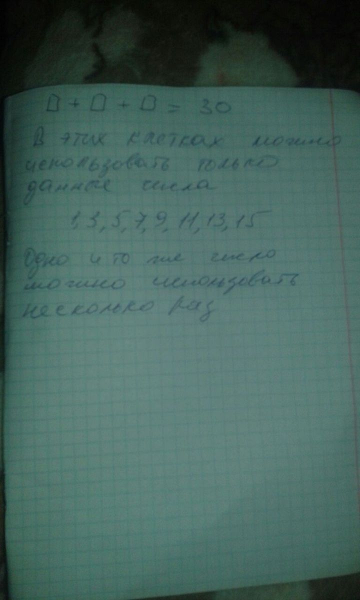 Требуется выбрать из чисел 1,3,5,7,9,11,13,15 ровно три так, чтобы их сумма была равна 30. Это невозможно, так как все эти числа нечётные, а сумма 3 нечётных чисел - нечётное число. Она не может равняться чётному числу 30.