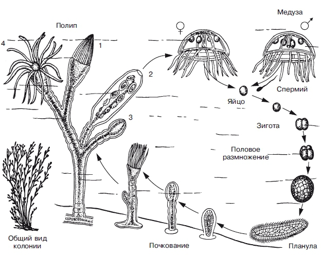 Полип может выбрасывать в воду мужские и женские гаметы из которых формируется яйцо, а из него медуза.