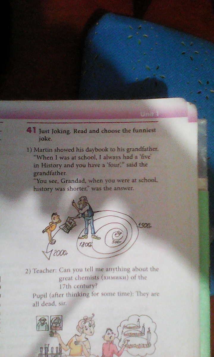 "Когда я был в школе, я всегда получал пятерки по истории, а ты получаешь четверки"- сказал дедушка