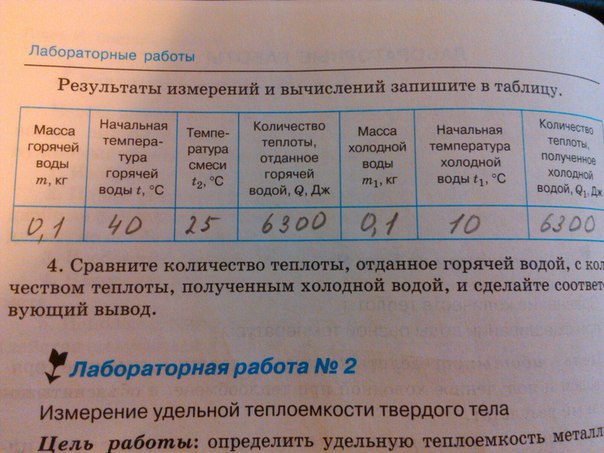 3. Рассчитайте количество теплоты, отданное горячей водой при остывании до температуры смеси, и количество теплоты, полученное холодной водой при её нагревании до этой же температуры.