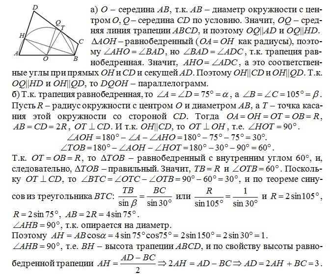 б) Найдите AD, если ∠BAD = 75° и BC =1.