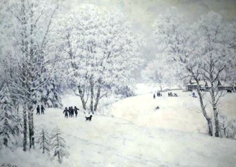 Зима подарила людям, изображенным на картине много красоты и веселья.