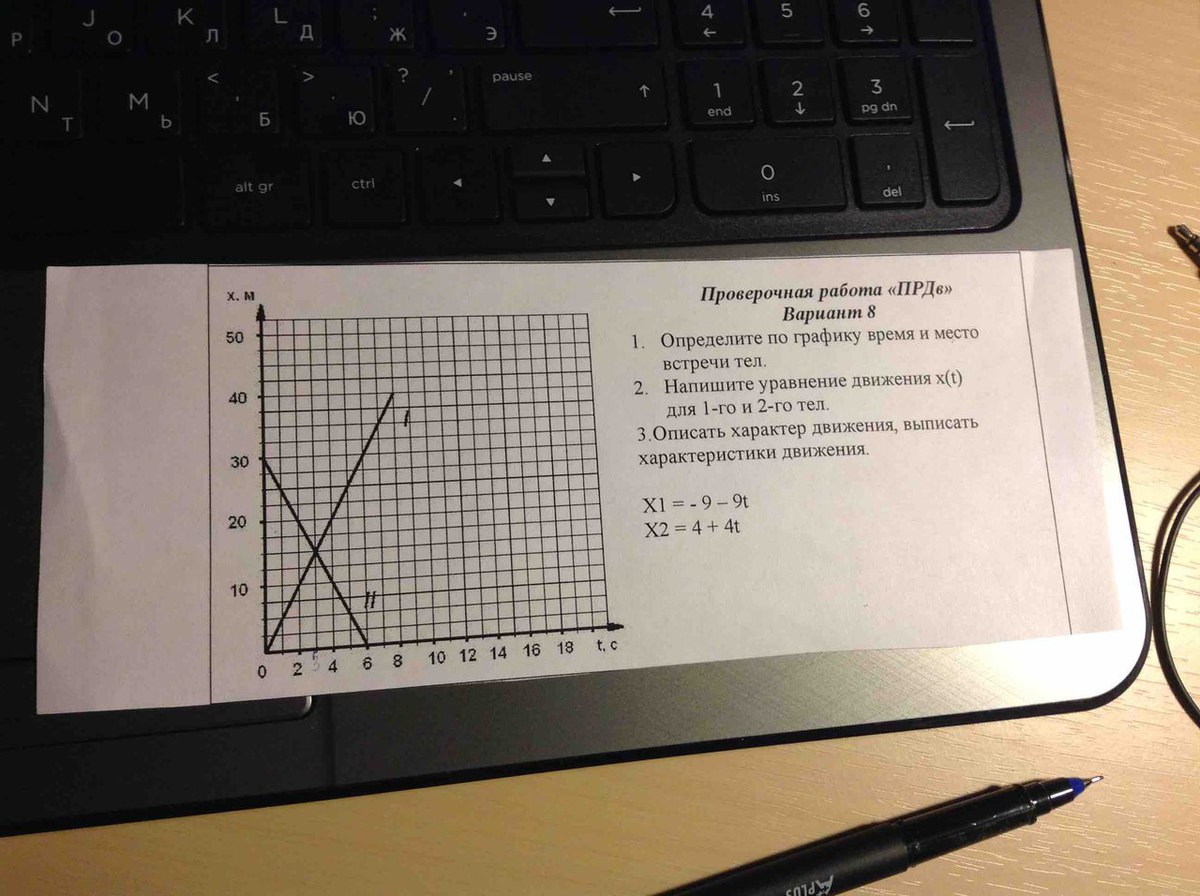 1) По графику определяем: встреча состоится через 3 с в точке х = 15 м.