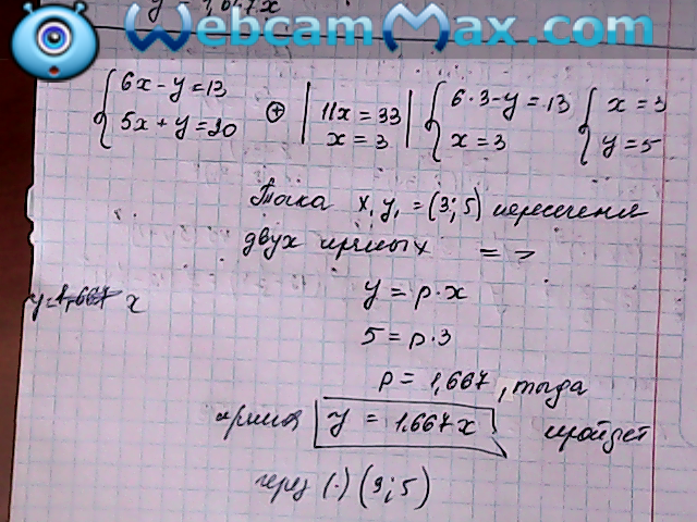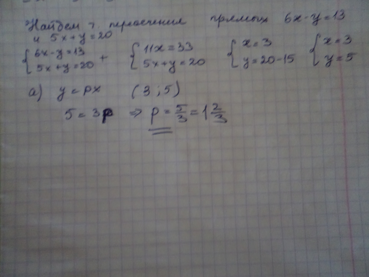 При каком значении p график функции: а) y=px б) y=px 1 пройдет через точку пересечения прямых 6x-y=13 и 5x+y=20