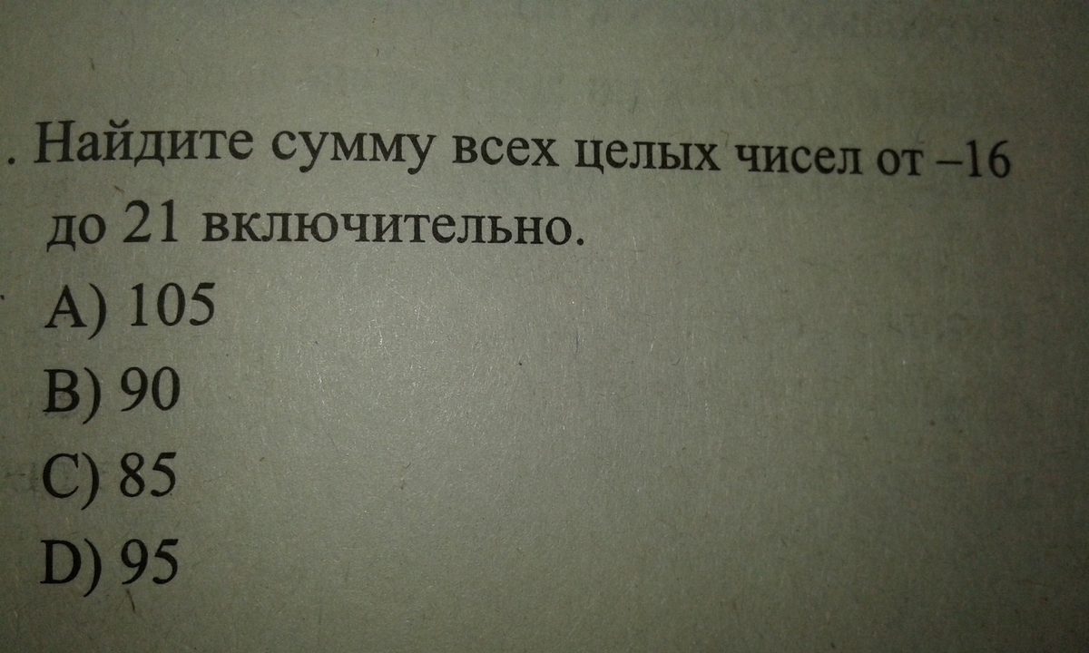 ++учитывая что все числа от -16 до 16 сокращаются остается только 17+18+19+20+21=95 ответ d