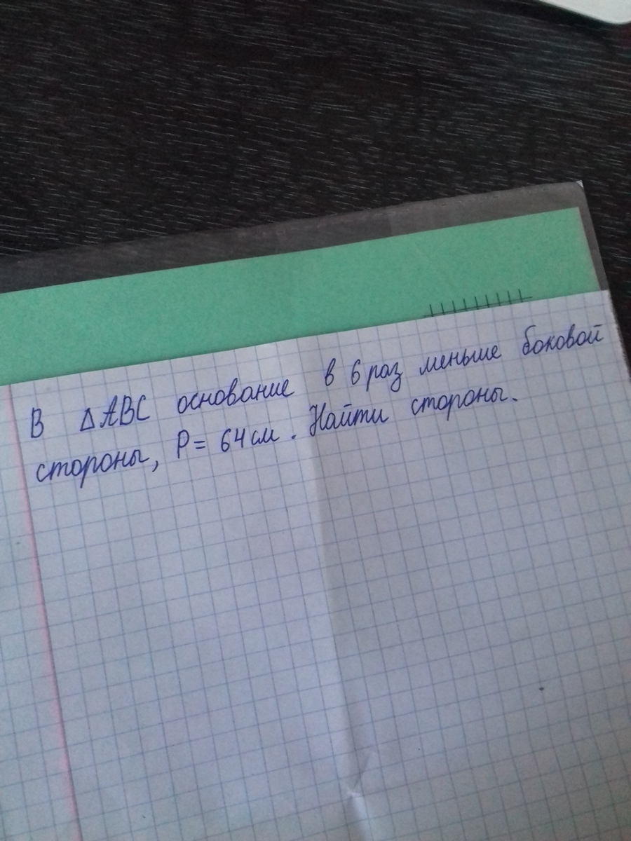 допустим, основание АС. Одна часть=х. составим уравнение х(АВ)+х(ВС)+6х(АС)=64см.