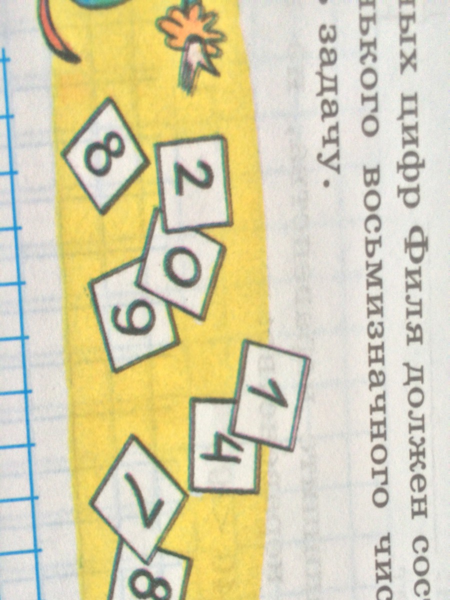 Из данных Цыфр Филя должен составить запись самого маленького восьмизначного числа.Помогите Филе решить задачу
