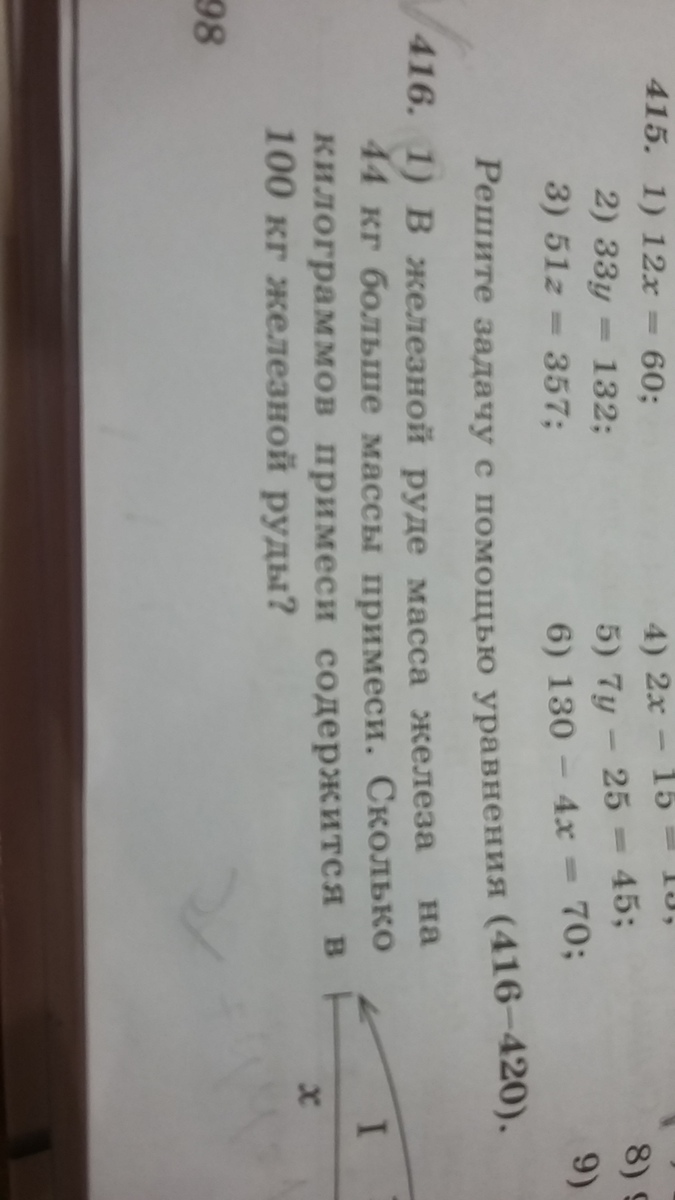 Пусть x - масса примеси в железной руде, тогда (x+44) - масса железа в железной руде. Отсюда составляем уравнение: