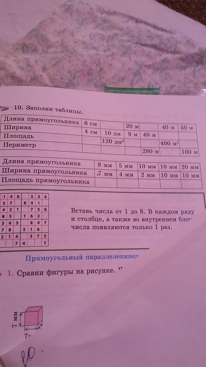 1) S = 6*4 = 24 см², Р = 6*2 +4*2 = 12+8 = 20 см