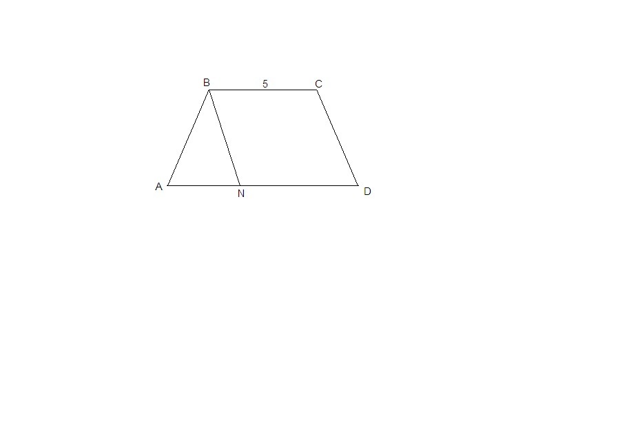 В равнобедренной трапеции ABCD через вершину B проведена прямая, которая параллельна стороне CD и пересекает сторону AD в точке N.