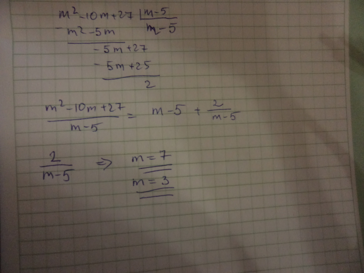 (m²-10m+27)/(m-5)=(m²-10m+25)/(m-5)+2/(m-5)=(m-5) +2/(m-5)
