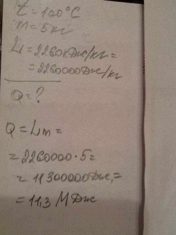 L- удельная теплота парообразования и конденсации ( 2260- воды) . Если t воды = 100 гр, то её не надо нагревать до t кипения, находим только Q, на парообразование.