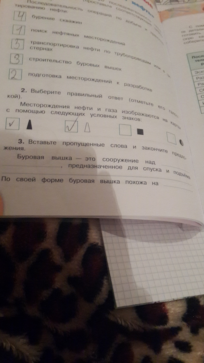 《Буровая вышка это сооружение над ________ _______, предназначенное для спуска и подъема __________________________. По своей форме буровая вышка похожа на ______.