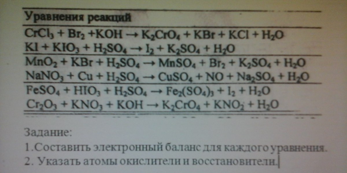 Составьте электронный баланс для каждого уравнения и укажите атомы окислители и восстановители.