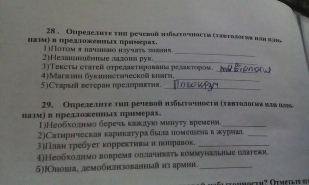 Найдите случаи тавтологии и плеоназма. Исправьте предложения 28 и 29