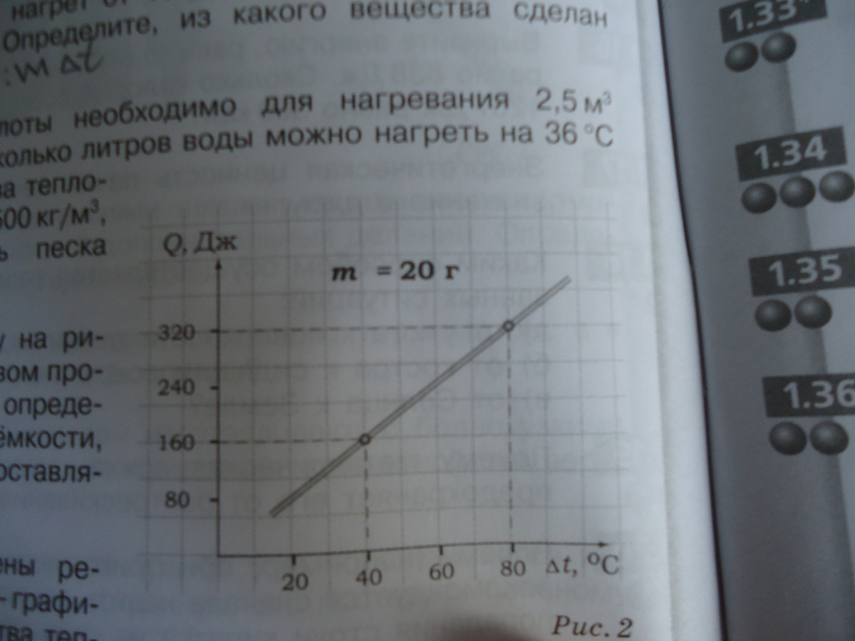 Определите по графику на рисунке 2, с какими веществом проводился эксперимент по определению удельной теплоёмкости, если масса образца составляет 20 г. СРОЧНО!