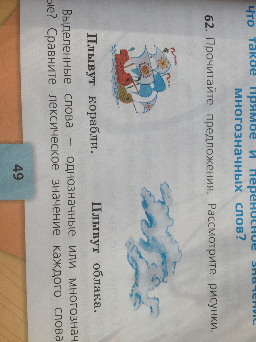 многозначные. "Корабли плывут" имеется в виду в прям смысле,а "облака плывут" в переносном,не в прямом.Не могут же облака плыть по воде?(Разве что в отражении). Т.е. это такое красивое выражение "облака плывут"