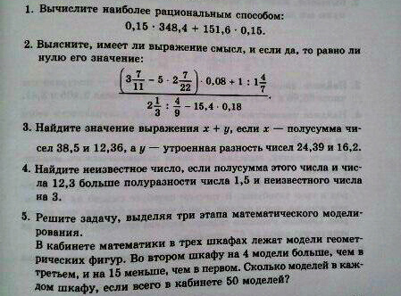 Пусть во втором шкафу х моделей. Тогда в третьем шкафу (х-4) моделей, а в первом (х+15) моделей. Составим уравнение (x+15) +x+(x-4)=50