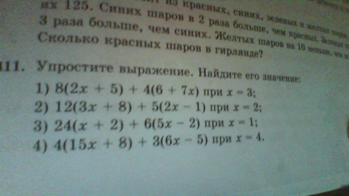 8(2х+5)+4(6+7х)= 16х+40+24+28х= 44х+64, если х=3, то 44·3+64=132+64=196