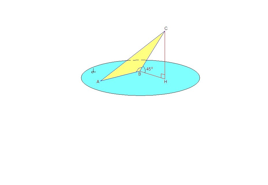Значит, ∠СВН = 45° - линейный угол двугранного угла между плоскостью треугольника и плоскостью α.